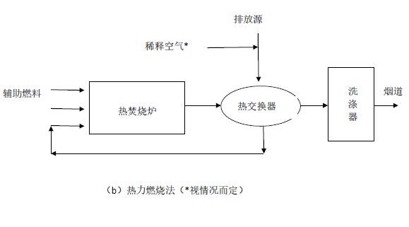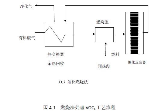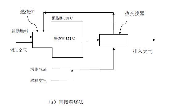 燃燒法可分為直接燃燒、熱力燃燒和催化燃燒3種,其工藝流程和性能分別見圖4-1和表4-1。