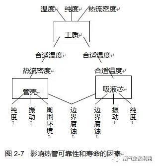 影響熱管可靠性和壽命的因素有很多,如圖2-7所示。其中最重要的因素是管殼、吸熱芯材料和工質的相容性。相容性在熱管的應用中具有很重要的意義,只有長期相容性良好的熱管,才能保證穩定的傳熱性能、長期的工作壽命及工業應用的可能性。歸結起來,造成熱管不相容的主要形式有以下三個方面,即:產生不凝性氣體;工作液體熱物性惡化;管殼材料的腐蝕、溶解。只有有效地解決了熱管的不相容問題,才能使熱管這種高性能的傳熱元件實現長壽命、低成本,以便在工業中大規模推廣使用。