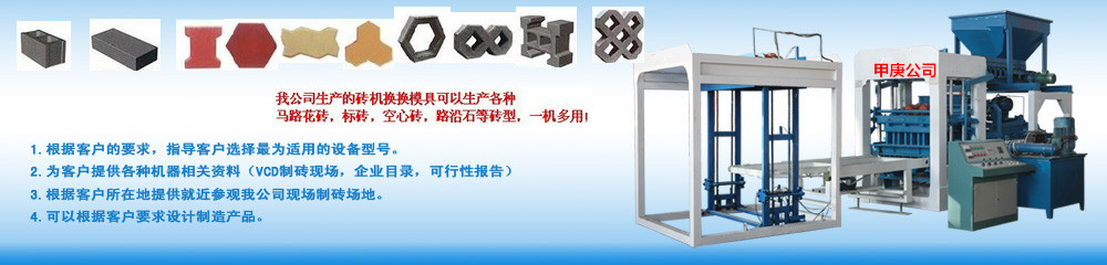 公司注冊資金600萬,現有職工300余名,高、中級技術人員50名,建廠至今,經過我們多年的努力,公司已經發展成為集科、工、貿為一體的著名企業。公司擁有先進的生產設備,一流的檢測 設施,雄厚的技術力量。公司主要生產有:Q4-15、Q6-15、Q8-15、Q10-15、Q12-15型環保免燒磚機,固定式4-35小型環保免燒磚機、4-40型小型環保空心磚機、環保免燒磚機,環保水泥磚機,環保砌塊磚機,環保小型磚機、面包磚機、路面磚機等免燒磚機設備,并配套有攪拌機,輸送機,碼垛機,電瓶叉車,自動上板機......