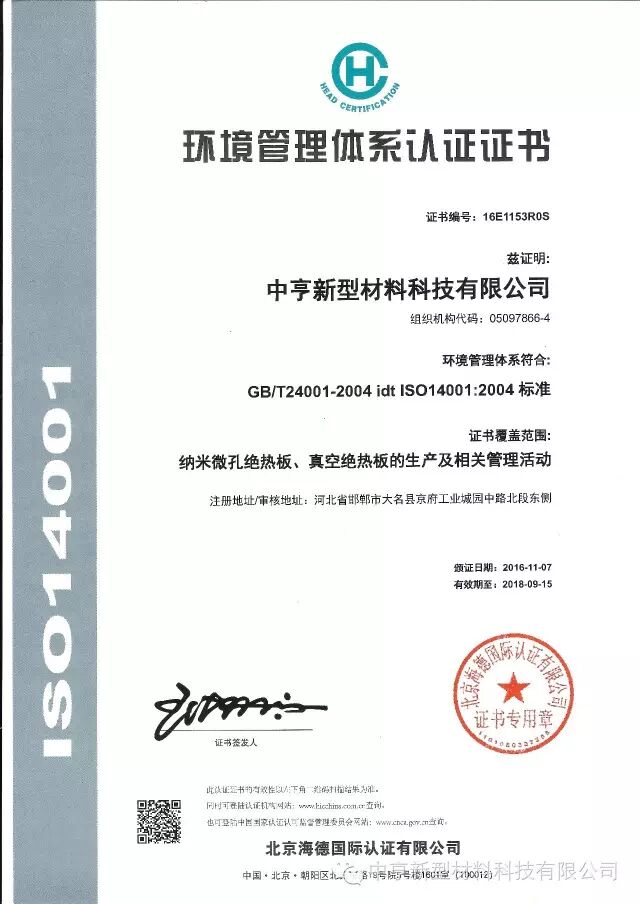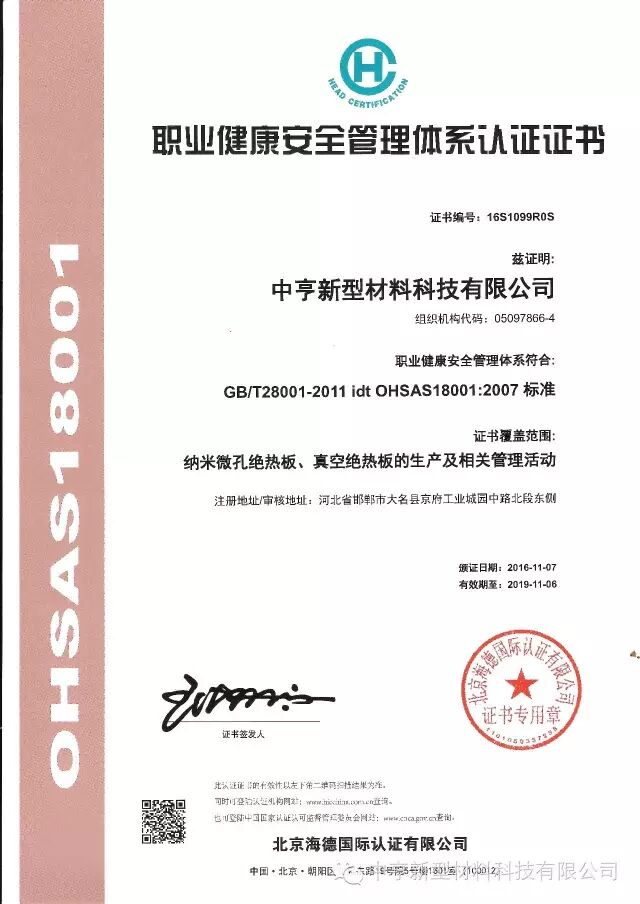近期,海德國際認證中心專家組對中亨新型材料科技有限公司(以下簡稱“中亨新材”)質量、環境、職業健康安全管理體系工作經過為期3天的審核,圓滿結束,并順利通過審核。