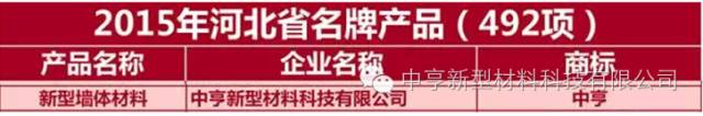經企業申報、各市及行業推薦、第三方專業評價、用戶滿意度調查測評、省質量獎評審委員會審議等環節的層層篩選,2015年度河北省名牌產品揭曉,中亨牌新型墻體材料榮獲2015年河北省名牌產品獎。