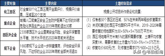 圖表1:《江蘇省化工行業整治提升方案》主要內容及土壤修復需求測算