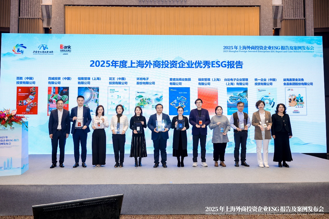 花王(中國(guó))被授牌“2025年度上海外商投資企業(yè)優(yōu)秀ESG報(bào)告”(左五)