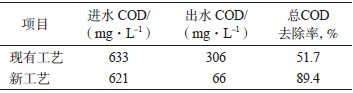 新工藝與現有工藝(調節—氣浮—水解酸化—活性污泥法)COD去除效果的對比見表2。由表2可見,在進水COD基本相同的條件下,新工藝的總COD去除率可達89.4%,較現有工藝提高了37.7%。由此可見,新工藝中采用的高效菌微生物固定化技術及新型氧化混凝技術均對濕法腈綸廢水有較好的去除效果。