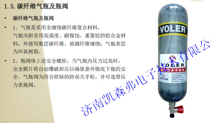 空氣呼吸器 它以壓縮氣體碳纖維瓶為氣源,碳纖維瓶中盛裝氣體為壓縮空氣。