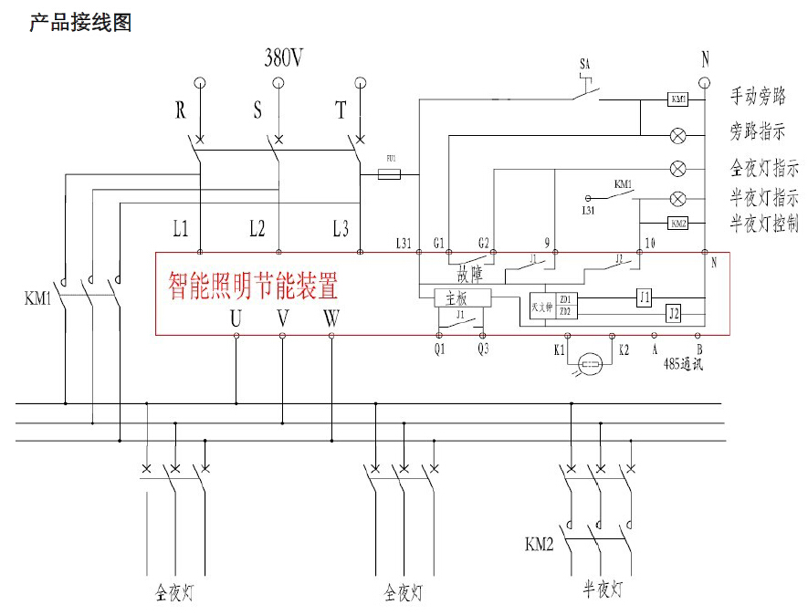 7.手動與自動旁路功能MTK智能節能照明控制器在出現故障、或過載、或超溫時執行旁路,使該相的照明與電源電壓直接接通。