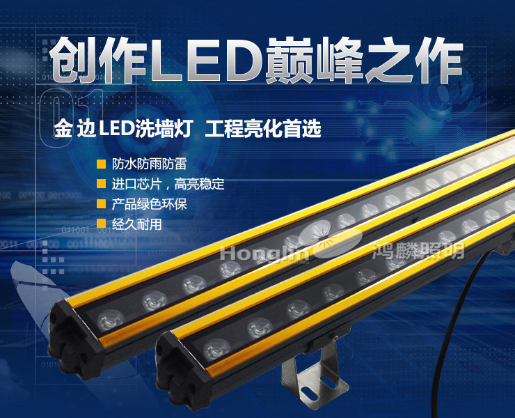供應24W金色洗墻燈_高檔金邊洗墻燈_酒店外墻專用線形洗墻燈_橋梁專用洗墻燈_建筑物洗墻燈,LED洗墻燈廠家首選江門鴻麟照明,更多LED產品,歡迎登錄鴻麟網站查看 www-honglinled-com