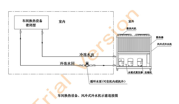 風冷式設(shè)計,除配備箱型機組的所有性能外,無需加裝冷卻水塔和冷卻水泵,安裝簡單、操作方便,可裝整機安裝在室外,節(jié)約生產(chǎn)場地及空間,可降低噪音,集中供應(yīng)冷卻水,適用于大中小型生產(chǎn)設(shè)備,此機型適合缺水源的地區(qū)。