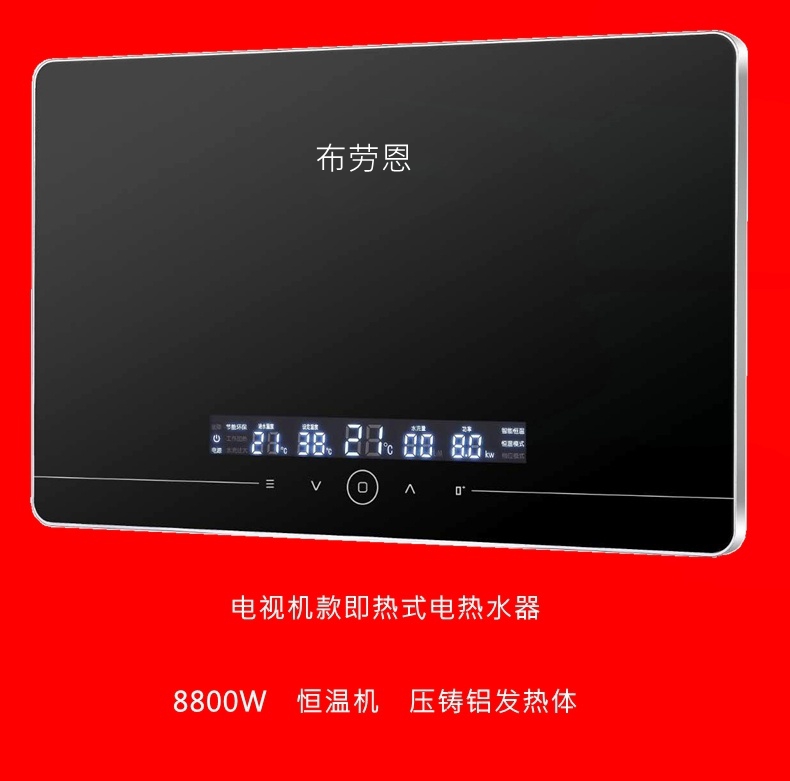 淋浴屏集成電熱水器:大頂噴沐浴更舒服、頂噴、側(cè)邊花灑自由智能切換很方便,出水溫度自由設(shè)定、三種模式智能自由切換(38°、42°、45°),8500W噴金鑄鋁發(fā)熱體更耐用,雙防電墻讓沐浴更安全,金色外觀、動(dòng)感大彩屏視覺效果更養(yǎng)眼!安裝方便、操作簡(jiǎn)單 全國(guó)咨詢熱 線(微 信):189 8858 7561曾經(jīng)理