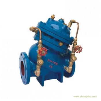 本產品由主閥和調節閥及接管系統組成,閥體采用直流式閥體,主閥控制室為膜片式或活塞式的雙控制室結構,控制室比一般水力控制閥增加了一個,增加了對主閥的控制功能,實現了對水泵出口的緩慢開啟、全開、緩閉、截止等多功能控制,實現了一個閥門、一次調節對水泵出口的多功能控制。