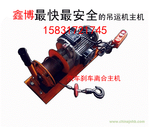 鑫博吊運機電機還裝有熱敏開關,可防止電機過熱而燒毀;減速機為兩級齒輪減速,固連于電機;離合器、制動器與蠅筒裝為一體,但離合器處于脫離狀態時,可實現快速下降,操作制動器可控制下降速度以避免發生沖擊。動力裝置外殼正面所開的圓孔可用來安裝吹風機,用戶可根據需要配備吹風機進行強制冷卻。殼體自身帶有工具箱,內裝有離合器手柄、帶制動柄的專用扳手、千斤螺母墊圈、桿頂帽、按鈕起動器、行程開關、電線和說明書等。支架部分由螺桿,千斤螺母及立桿構成的主桿和轉動臂組成。轉動臂可在主桿上轉動360度,在臂端設有行程開關以防操作失誤或按鈕失靈而造成的起吊過位事故。