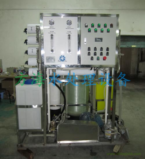 根據船舶應用的特殊性而設計的船用淡水制造裝置,國際通稱為海水淡化設備,是一種采用反滲透技術原理對海水進行淡化從而為航海人員提供淡水的裝置。該設備體積小、重量輕、占地省、安裝方便、適應性強,可以在狹窄擁擠的船艙、甲板、船員艙、過道等空間安裝。該設備操作簡單維修方便,只要有海水、有電,啟動后可立即提供淡水。設備脫鹽率高,性能穩定、安全可靠、設計新穎巧妙,避免了頻繁的清洗,無環境污染。