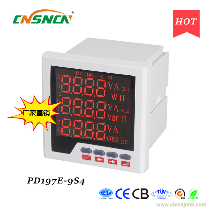多功能電力儀表(智能配電監(jiān)控儀)用于配電系統(tǒng)的測(cè)量與控制。儀表可真有效值測(cè)量電壓、電流、有功功率、無功功率、視在功率、功率因數(shù)、頻率、有功/無功電能。6路數(shù)字量輸入用于監(jiān)視開關(guān)狀態(tài),兩路繼電器輸出用于控制開關(guān),兩路模擬量輸出用于DCS系統(tǒng)或工業(yè)監(jiān)控設(shè)備。多功能電力儀表將測(cè)量、智能化多功能和簡(jiǎn)單人機(jī)界面結(jié)合在一起。