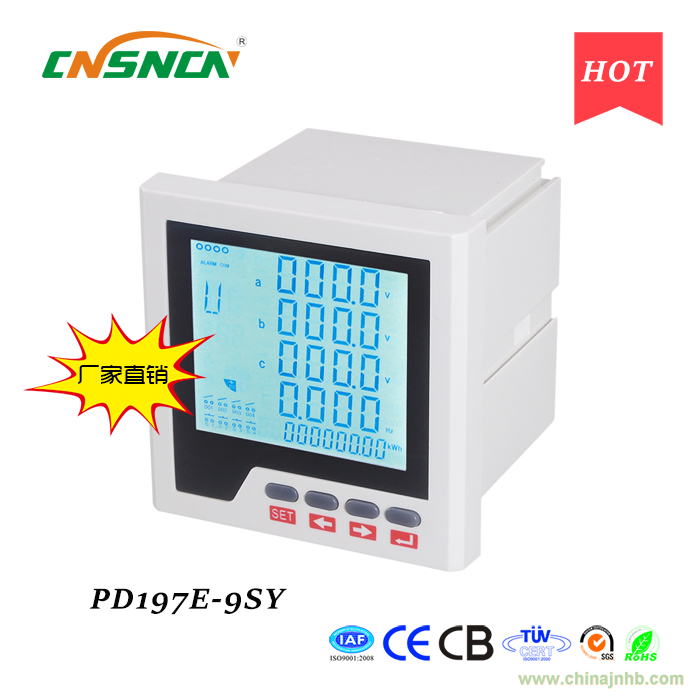 多功能電力儀表(智能配電監控儀)用于配電系統的測量與控制。儀表可真有效值測量電壓、電流、有功功率、無功功率、視在功率、功率因數、頻率、有功/無功電能。6路數字量輸入用于開關狀態,兩路繼電器輸出用于控制開關,兩路模擬量輸出用于DCS系統或工業監控設備。三相多功能電力儀表將jing確測量、智能化多功能和簡單人機界面結合在一起。