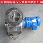 星型卸料器工作時,粉塵靠重力落入,充滿上面和側面的星形葉片空格。葉片轉子由電動機通過減速機轉動軸帶動,葉輪轉到下部粉塵靠自重卸下。這種卸塵器一般都安裝在除塵器灰斗下部,為保證連接處的嚴密不漏風,在回轉卸料器的上部應經常保持(儲存)一定高度的粉塵。因為葉輪轉動時,卸完粉塵后葉輪轉上的那一面經常是沒有粉塵的,所以容易使空氣漏入。為了保持一定高度的灰柱,而且不致卸空,最好在灰斗內裝設料位信號設施,并與卸塵閥的電動機建立連鎖。