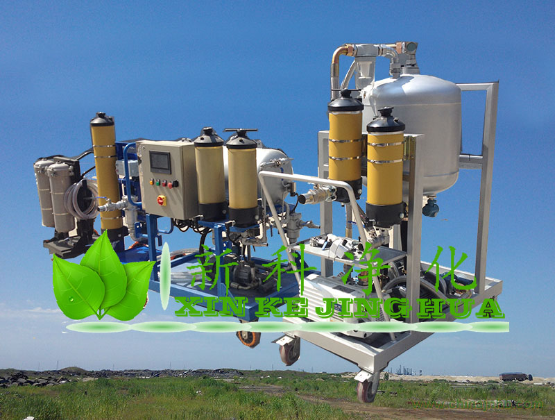 該濾油機(jī)的分離濾芯由特殊的疏水材料制成,在油液通過分離濾芯時(shí),水珠被擋在濾芯的外面,油液則進(jìn)入濾芯并***終從出液口排出。