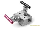 316 SS Two-Valve Manifolds, 1/2 Female NPT Inlet/process, Flanged Outlet/instrument, 1/4 Female NPT Test/Vent