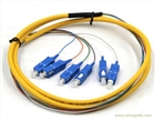 束狀尾纖由符合全色譜規范的康寧緊套光纖,外包芳綸纖維加強元件,再包裹具有一定阻燃性能的聚氯乙烯外護套構成,廣泛應用于傳輸線路與終端設備之間的密集連接。