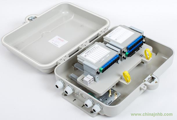 為適應市場需求設計的分纖(分光)箱,分為直熔型、適配器型光纜分纖箱和盒式、插片式光纜分光分纖箱。箱體材料采用優質冷軋鋼、不銹鋼或復合材料。主要適用在FTTH接入方式下的樓道或戶外分光點。適用于FTTH的一級或二級分光,二級分光優勢特別明顯。并且引入了旁路纖接續功能。