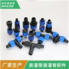 16滴灌帶管件 農業灌溉鎖母直接三通彎頭閥門滴灌管堵頭生產車間