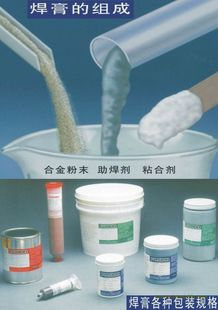 膏狀銀釬料(即粉狀銀焊料與膏狀銀焊劑及相關的活性劑根據釬焊工藝的要求按一定的比例調成膏狀釬料)。膏狀銀釬料相比與其它銀釬料(銀焊條、銀焊環、銀焊片、銀焊絲)具有易于涂捄于工件待焊處,也可用于半自動及自動模板印刷及針筒定量注射,高效簡便,可定量控制焊膏使用量,大大提高了工作效率和產品成品率,也改善了工作環境。特別適合精密儀件、管樂、合金工具、電器配件、觸點、飾品及各種小工件之間的釬焊。