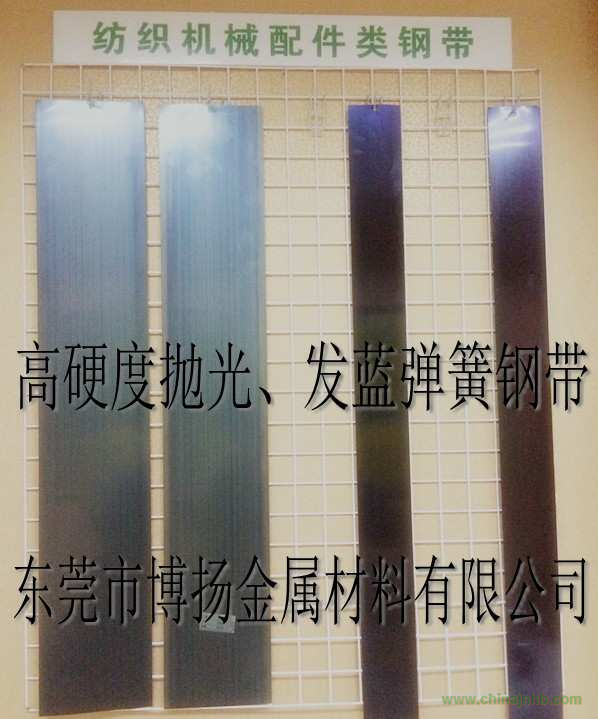 S45C德國的115W8, M95, C100 ,W95, M85, M75, C75等優質碳素工具鋼、合金鋼。鋼帶熱處理厚度0.05mm-2.50mm,寬度3mm-300mm。熱處理鋼帶表面可以拋光、發藍、發黃處理。產品精 度高、耐磨性好、韌性強、質量穩定,公司通過ISO9002:2000認證。產品完全可以替代進口,從而縮短用戶的訂貨周期、降低原材料成本、提高產品的 市場競爭力。鋼帶產品適用于減振器閥片、離合器膜片彈簧、壓縮機閥片、針織機配件、各種印刷刮刀、環形帶刀、木工帶鋸等高質量要求產品,擁有完整、科學的 質量管理體系。東莞市長安博揚特殊鋼有限公司的誠信、實力和產品質量獲得業界的認可。歡迎各界朋友蒞臨參觀、指導和業務洽談。我們將以優質的產品質量 和完善的售后跟蹤竭誠為客戶服務。