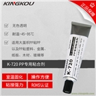 景固KINGKOU K-720 PP(聚丙烯)專用膠水系單組份合成樹脂復合型膠水,粘接力強,性能穩定、主要用于粘接PP塑料以及PP與其它材質的大面積粘接。該膠水粘稠度適中,常溫固化,使用方便,可機器涂膠、點膠以及人工施膠。膠水完全固化后呈透明軟質狀態,起粘接、定位、密封、防水作用。