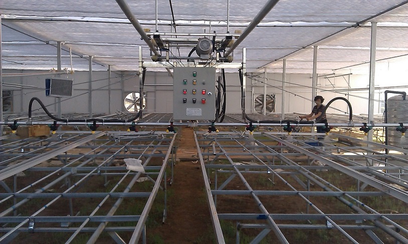 邯鄲興峰溫室大棚穴盤育苗進口或國產(chǎn)三嘴噴頭噴水專用無級調(diào)速遙控自走式噴灌機水車一、無級調(diào)速遙控噴灌機系統(tǒng)的組成