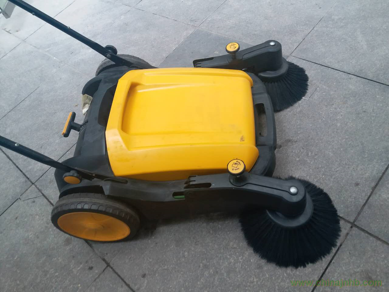 手推式無動力掃地機沒有任何動力來源,完全是靠人力進行推動并控制方向,通過滾刷與邊刷的轉動,來完成清掃工作。