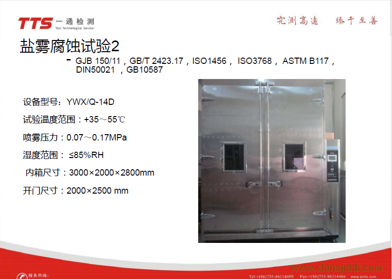 (1)中性鹽霧試驗(NSS試驗)是出現最早目前應用領域最廣的一種加速腐蝕試驗方法。它采用5%的氯化鈉鹽水溶液,溶液PH值調在中性范圍(6.5~7.2)作為噴霧用的溶液。試驗溫度均取35℃,要求鹽霧的沉降率在1~2ml/80cm/h。