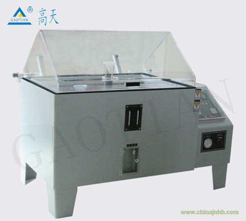 鹽霧箱頂蓋采用進口透明塑料板經高溫模壓焊接成型并設計成最佳頂角,不使箱內的冷凝水直接滴