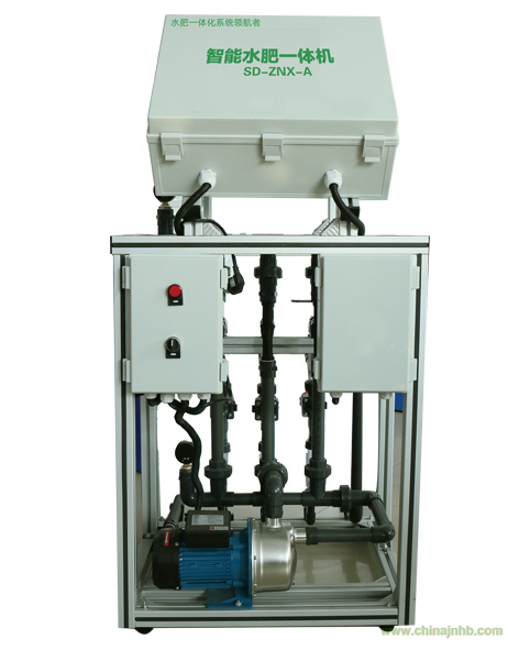 水肥一體機,又名施肥機,是借助壓力系統,將可溶性固體或液體肥料,按土壤養分含量和作物種類的需肥規律和特點,配兌成的肥液與灌溉水一起,通過可控管道系統供水、供肥,使水肥相融后,通過管道和滴頭形成滴灌、均勻、定時、定量,浸潤作物根系發育生長區域,使主要根系土壤始終保持疏松和適宜的含水量,同時根據不同的作物的需肥特點,土壤環境和養分含量狀況;作物不同生長期需水,需肥規律情況進行不同生育期的需求設計,把水分、養分定時定量,按比例直接提供給作物。