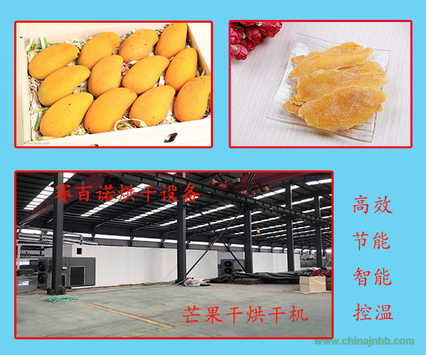 2、烘干中期:溫度可控制在60度左右,烘房的濕度可調為40%,時間為12個小時;這個時候的芒果已經過定色,不需要溫度那么高,但濕度還是比較大,應大量排濕;