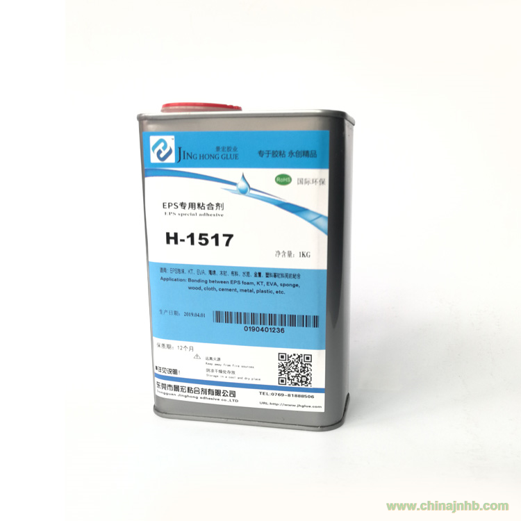 JINGHONG景宏 ® H-1517保利龍(EPS)泡沫膠水主要用于:聚苯乙烯(保利龍、EPS、XPS、EVA/普利龍)泡沫互粘及與其它金屬、木材、海綿、布料等材質粘合。