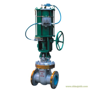 1、 本閥主要由閥體、閥蓋、閘板、閥桿、密封圈、雙層氣缸及其活塞、活塞桿、隔板連同緩沖機(jī)構(gòu)、手動(dòng)機(jī)構(gòu)、氣動(dòng)-手動(dòng)轉(zhuǎn)換裝置和閥蓋填料裝置等部分組成。