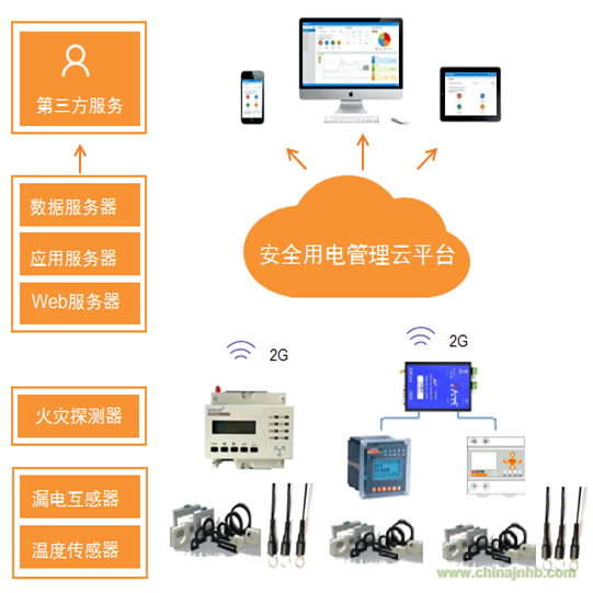 安科瑞協助、指導用戶完成硬件設備(包括電氣火災探測器、剩余電流互感器、溫度傳感器、無線模塊等)的安裝和調試,用戶將數據上傳至安科瑞智慧用電監控預警平臺,委托安科瑞管理,無需支付軟件平臺費用,只需根據接入的設備數量向安科瑞支付服務費。