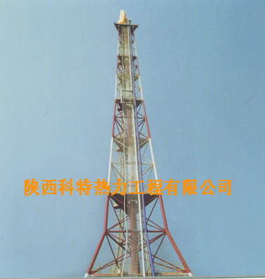 陜西科特熱力工程有限公司可設計制造完整的火炬氣排放管網和火炬裝置,可燃燒氣體種類包括天然氣、煉廠氣、廢氣、尾氣等各種有毒、可燃性氣體。點火方式有自動點火、地面手動爆燃點火等。工作原理(Work elements)被排放氣體經管道、閥門、分液、防回火裝置輸送至火炬頭部,火炬頭部配有長明燈,其燃燒源為相對穩定的供氣源。長明燈經點火器點燃后將一直燃燒,當排放氣到達火炬頭部時,立即被長明燈點燃。