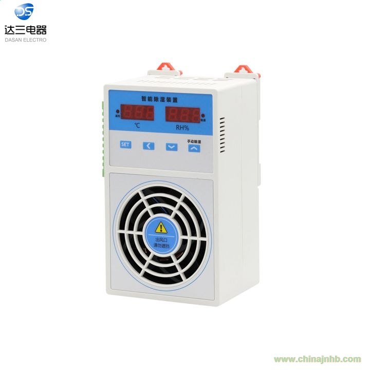 DS-CS800智能型除濕裝置是采用半導體制冷除濕方式, 主動將密閉空間的潮濕空氣在風扇的作用下吸入除濕風道, 空氣中的水汽經過半導體制冷機構后冷凝成水, 再通過導水管排出柜體, 可以達到很好的除濕效果。 通過減低空氣中含水量, 使相對濕度和絕對濕度同時下降, 幾乎不提高溫度, 不產生溫差帶來的負面影響, 從根本上杜絕或減少了事故的發生, 也不會因高溫而加速柜內器件及柜體的老化。 智能型除濕裝置把被動防止凝露方式,改為主動引導凝露,有效的防止柜內設備老化、 絕緣強度降低、 二次端子擊穿、 材料霉變及鋼結構件銹蝕等安全隱患,保證電網安全運行。
