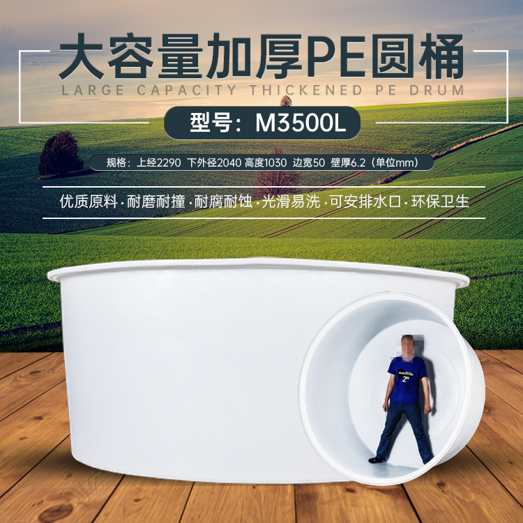 圓形大塑料桶無焊縫、一次成型、耐酸堿、耐碰撞、耐高溫(80℃)、耐冷凍(-30℃)、內外光滑、抗強震、防紫外線照射,符合食品衛生要求。使用壽命長、不長青苔易清洗、移動方便,具有安全便捷、無需維修等優點。