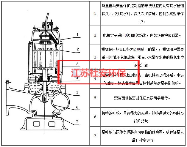 1、自動反沖洗、清淤功能:普通潛污泵工作時,池中的污水是靜止的,泵的吸力只能把泵口處的污物吸走,而遠離泵口處的沉淀物僅憑泵的吸力是吸不到,故排放不掉,天長日久,淤積的污物勢必必影響水泵處的正常工作,水泵甚至因淤堵而經常燒毀,而自動反沖洗潛水泵工作時,一小部分水流從泵的反沖孔內高壓射出,反沖池底,使沉淀在池底的污物運動起來,形成懸浮物,被水泵即時抽吸排出,從而杜絕污物淤積的發生。