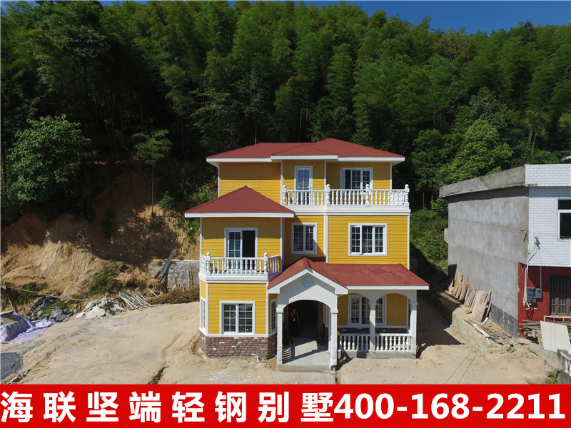 陽光公館輕鋼別墅采用現場施工裝配,受天氣影響較少,大量的墻板及預制疊合板都在工廠生產,從而大量減少了現場施工強度,甚至省去了砌筑和抹灰工序,樓板采用裝配式鋼筋桁架自承式樓板,可同時多層施工,實現立體交叉作業,施工速度更快,比傳統建筑節省約百分之七十的建筑工期。