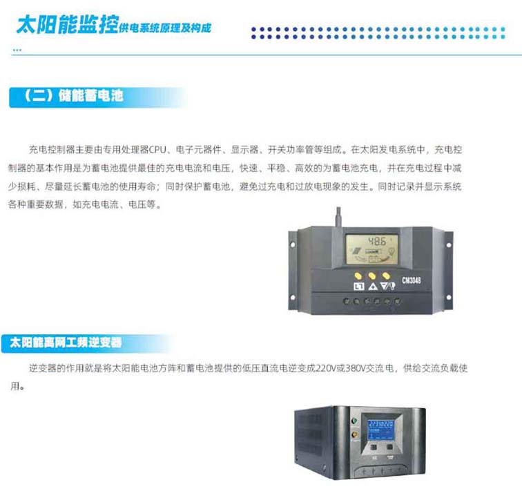 (5)太陽能離網(wǎng)供電系統(tǒng)(聲明鴻藝祥公司只生產(chǎn)提供符合客戶要求的太陽能離網(wǎng)供電系統(tǒng):太陽能組件、太陽能蓄電池、太陽能控制器、離網(wǎng)逆變器、蓄電池地埋箱上述設(shè)備;來配套解決客戶的戶外設(shè)備供電需求,如監(jiān)控供電,路燈供電等,其他非供電單元需要咨詢設(shè)備公司,我公司不提供)