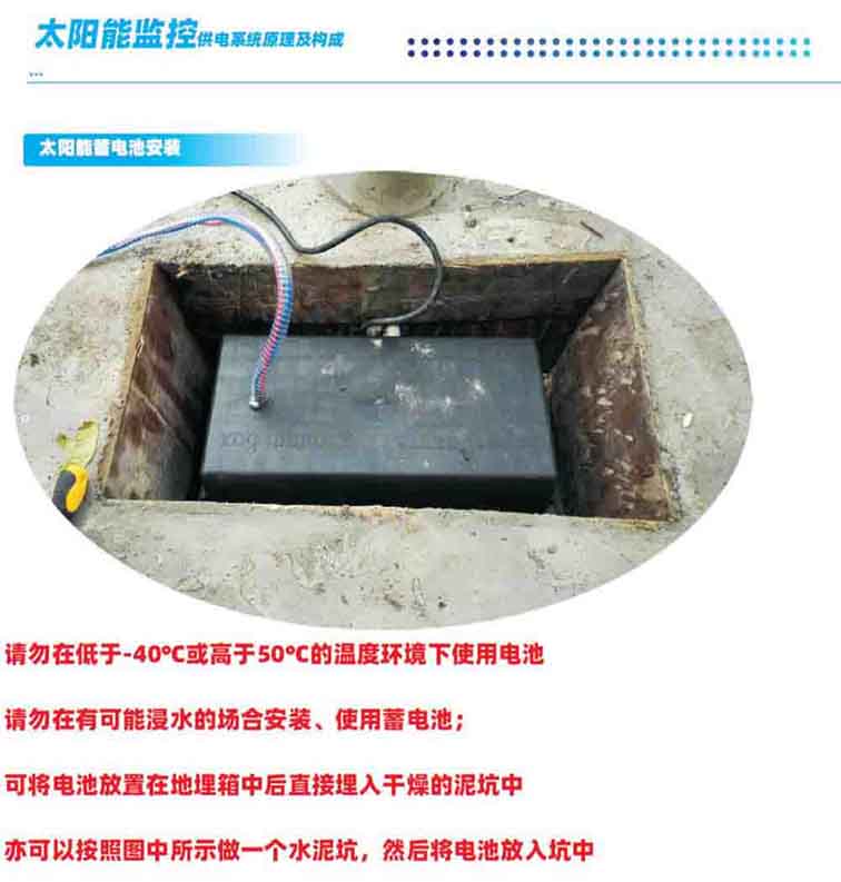 4):膠體儲能蓄電池的固位置:是地埋還是選擇放在地面上,根據(jù)環(huán)境和溫度來確定。(建議地埋)