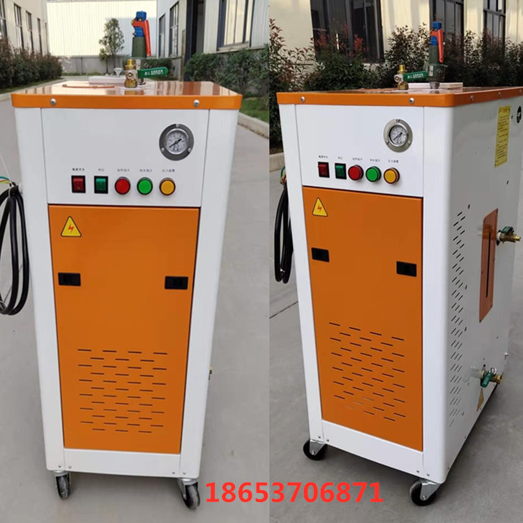 機器帶有蒸汽搶管及球閥,使用前接好水電,先開水后開電,打開電源開關后開始自動加水,當水加滿后機器自動停止加水開始加熱,當壓力達到0.7mpa設定壓力后機器自動停止加熱壓力報警燈亮起即可使用。使用時邊噴邊擦。每天工作結束后要到機器壓力降到0.1mpa帶壓把機器內的水排凈即可。