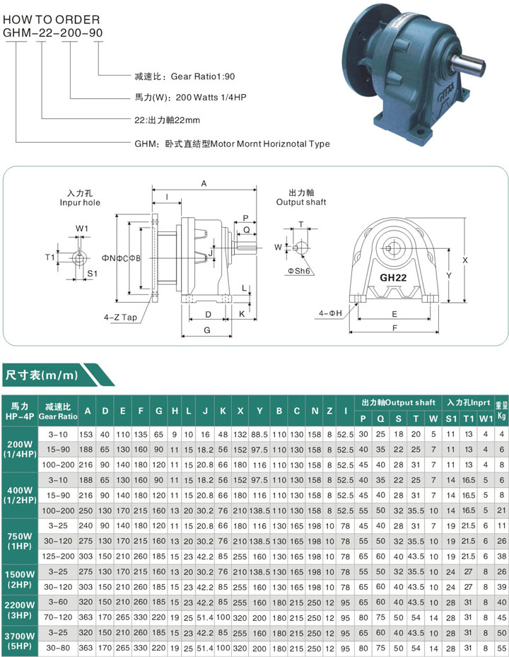 GHM-18-100-3聯成品牌減速機: 齒輪采用高強度低碳合金鋼經滲碳淬火而成,齒面硬度達HRC58-62,齒輪均采用數控磨齒工藝,精度高,接觸性好、運轉平穩,噪音低、使用壽命長,承載能力高、易于拆檢,易于安裝。