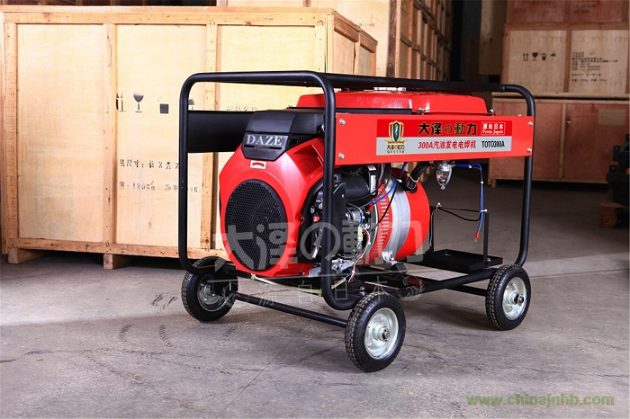 汽油發電電焊一體機300A 采用斬波,再加上脈寬調制和電抗器平波技術,使得焊接電壓波形更平穩 焊接時電流不過零,電流波動小,焊縫質量高 ,優質電力 ,新型avr技術與減震線圈的應用, 使機器可以達到電焊電壓的波形 ,而沒有浮動的電焊電流則意味著高質量的電焊操作。可以同時進行電焊機,照明,發電,可用堿性焊條,不銹鋼焊條 各種普通等等焊條。 大澤動力啟動快捷、運轉平穩、震動小、油耗省、體積小、結構緊湊、點火穩定可靠等優點,大大提高您的工作效率,戶外施工的理想伴侶!