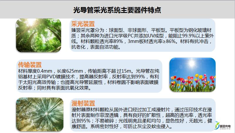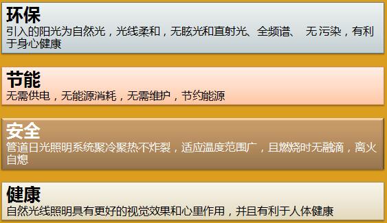 光導管照明系統可以給見不到陽光的地方帶來光明,不但日光充足,光線柔和,而且還有利于身體健康,起到殺菌的作用;