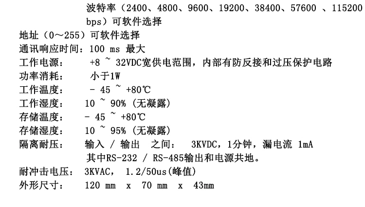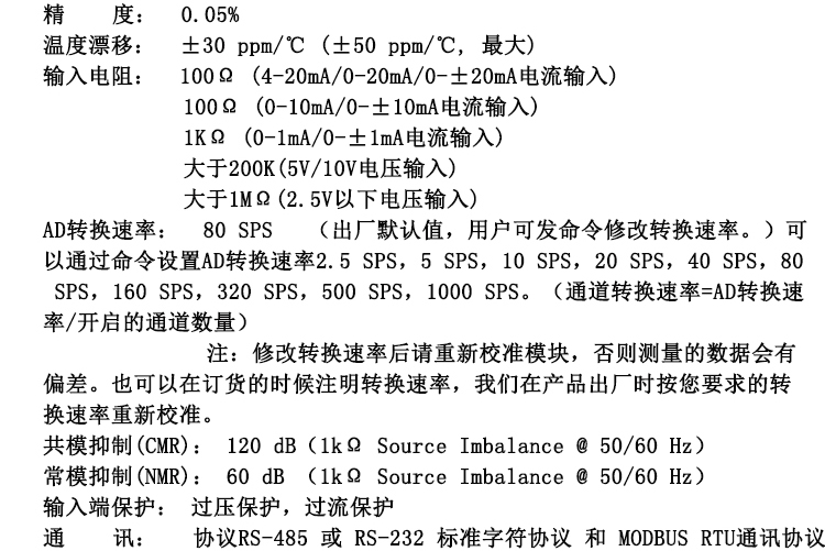 產品包括電源隔離,信號隔離、線性化,A/D轉換和RS-485串行通信。每個串口最多可接255只 WJ29系列模塊,通訊方式采用ASCII碼通訊協議或MODBUS RTU通訊協議,波特率可由代碼設置,能與其他廠家的控制模塊掛在同一RS-485總線上,便于計算機編程。