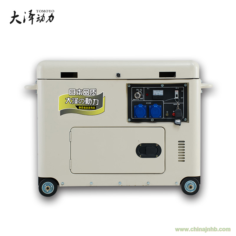 大澤靜音柴油發電機結構上的共同點是除了小型電機有用一直磁鐵產生磁場以外,一般的磁場都是由通直流電的勵磁線圈產生,而且勵磁線圈放在轉子上,電樞繞組放在定子上。因為勵磁線圈的電壓較低,功率較小,又只有兩個出線頭,容易通過滑環引出;而電樞繞組電壓較高功率又大,多用三相繞組有3個或4個引出頭,放在定子上比較方便。發電機的電樞(定子)鐵心用硅鋼片疊成,以減少鐵耗。轉子鐵心由于通過的磁通不變,可以用整體的鋼塊制成。