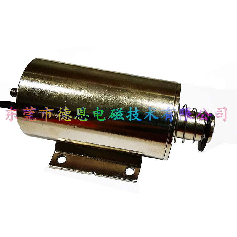 產(chǎn)品款式:一般電磁鐵分為二種款式,拉式(可動鐵芯拉動載體向前運(yùn)動,用彈簧復(fù)位即可);推式(在拉式基礎(chǔ)上增加頂桿和擋塊,擋塊的作用是用來限位作用,載體在前面,電磁鐵前端的擋塊推動載體向前運(yùn)動,用彈簧復(fù)位)。